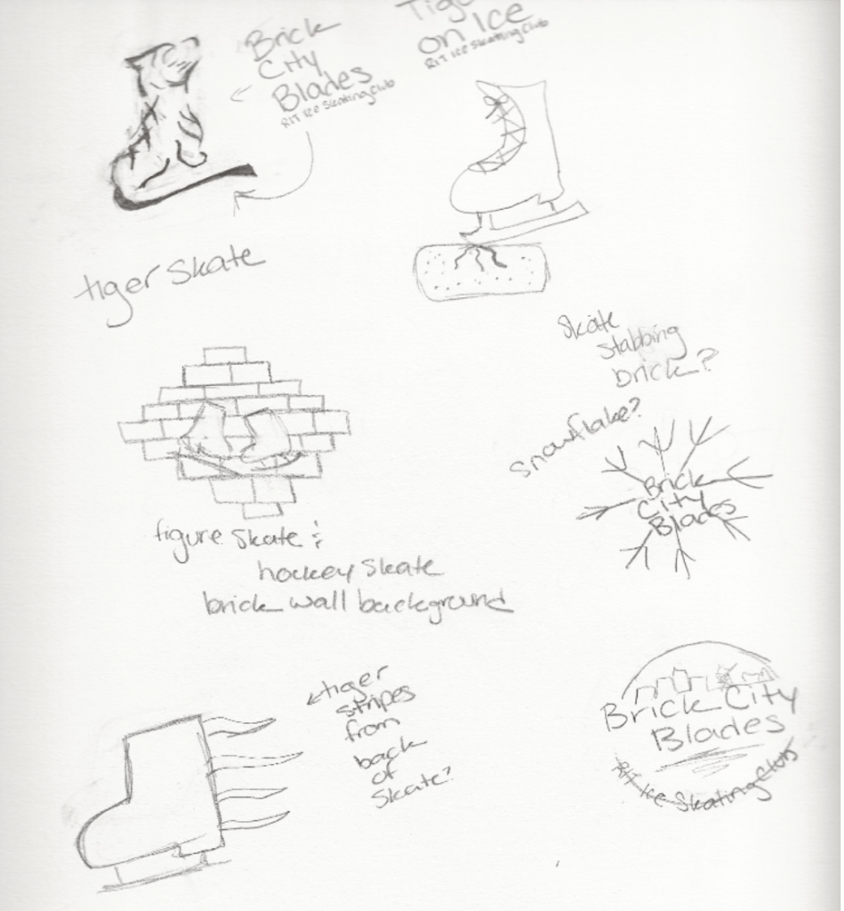 While it was important to have a skate in the logo, I wanted a sense of the RIT community within it as well. Using the gestalt principle, I created a logo that incorporates the traditional ice skate as well as a tiger, representing RIT and its tiger mascot. I chose the primary colors to be a light blue color, black and white while the secondary color is an orange color to correspond with the RIT orange. The typeface I chose is Futura because of the simplicity of the typeface contrasts with the detailed image logo itself, as well as it works well in smaller sizes.