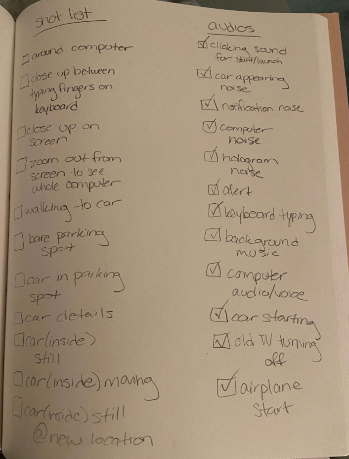 Once given the prompt for the project, I knew I wanted to follow action filled storyline. I decided on a futuristic feel because when I thought of HUD I thought of a spaceship or mission of some sort. Using my trip to Paris, France as inspiration I created a storyline. With the futuristic aesthetic in mind I chose a cool color palette and found a type face called Aviano Future. I researched audios of futuristic sounds and found a robotic voice that would speak what I wrote. I wrote a script to type for the robotic voice and used that in my audio as well. With the idea, mood board, and audio in mind, I created a story board and animatic before creating the final video.